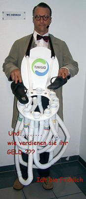 "Grafschafter Nachrichten" / 15.10.12 Lachsalven für Komödianten Auch ohne diese gute Vorbereitung hätten "Herr Fröhlich" und "Herr Niels", alias Niels Weberling mit ihrem Können ein leichtes Spiel mit dem Publikum gehabt. Herr Fröhlich kam mit pomadisiertem Haar, gekleidet im Stil der 1950er Jahre daher. Immer nah am Publikum, flocht er eigene und Gedichte von Heinz Ehrhardt ein – der Unterschied war kaum auszumachen. Eigenwillige "Musikinstrumente", die ihm die irrwitzigsten Verrenkungen abverlangten, waren der Objekt gewordene Ausdruck seiner Phantasie. Ob eine Tetra-Pack-Pan-Flöte, die Ton-Leiter oder eine Schubkarre, deren Rohrrahmen er als Blas- und das Blech als Schlaginstrument nutzte, immer hatte er die Lacher, aber auch den Respekt auf seiner Seite. Immer nah am Publikum und immer nett, gepaart mit enormer Präsenz und Können, war dies ein gelungener Abend und ein köstliches Vergnügen.. weiter ...
